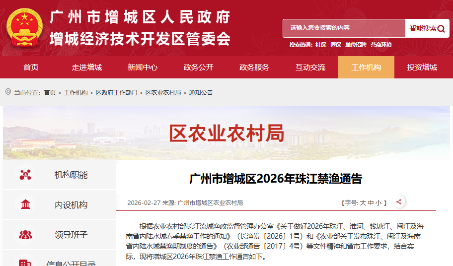 《广州市增城区2026年珠江禁渔通告》