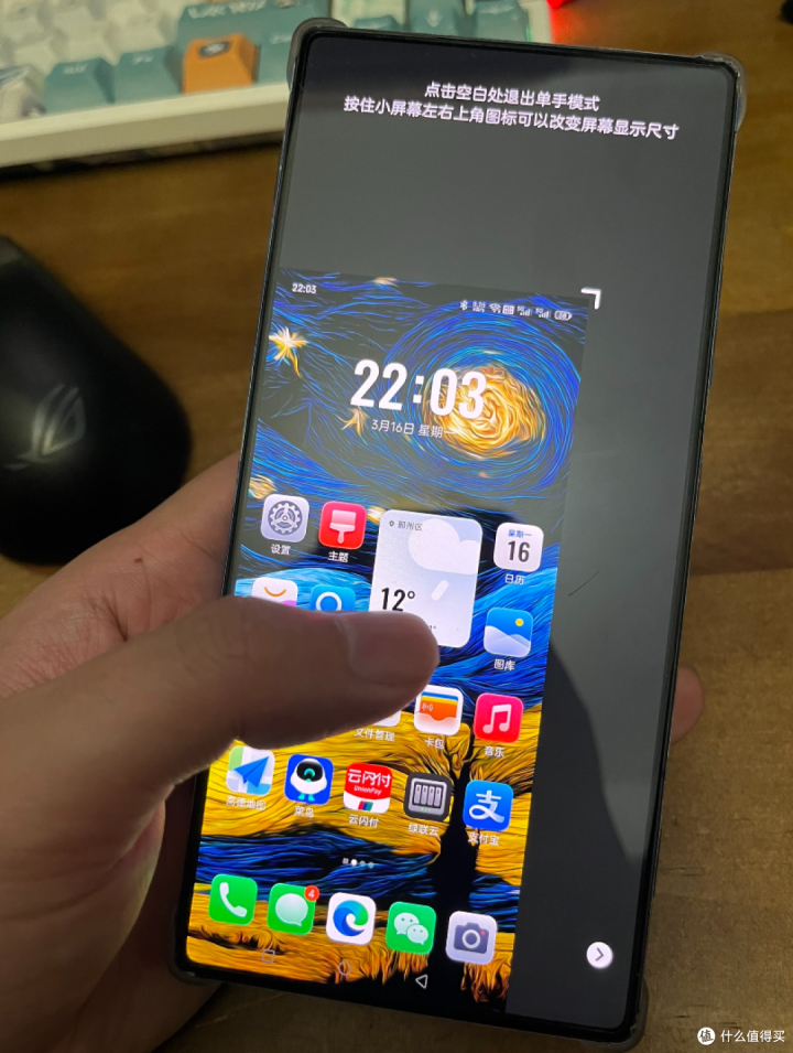 然后它有一个单手模式,这个还是挺好用的,就是感觉买大屏手机突然失去了意义。